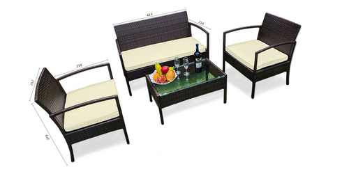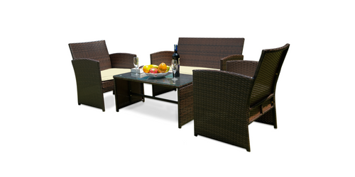 4-Piece Outdoor Wicker Patio Conversation Set with Glass Coffee Table –
